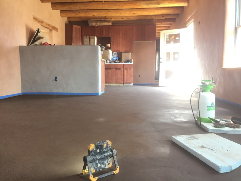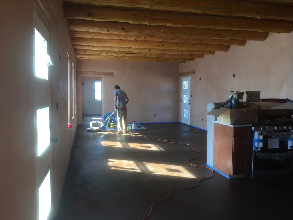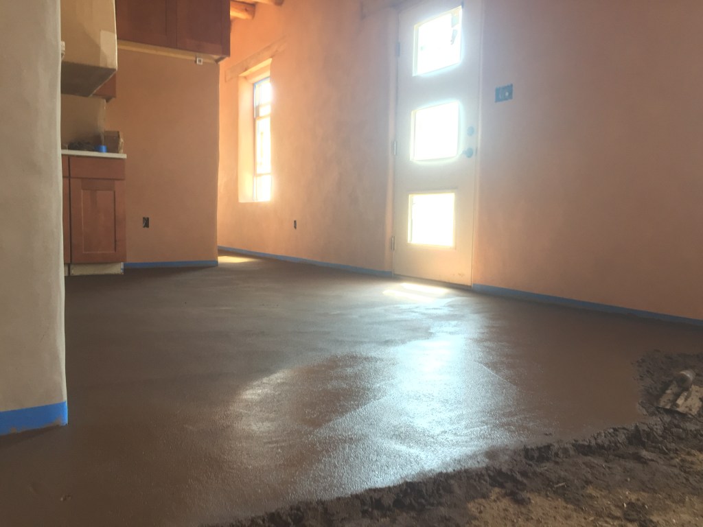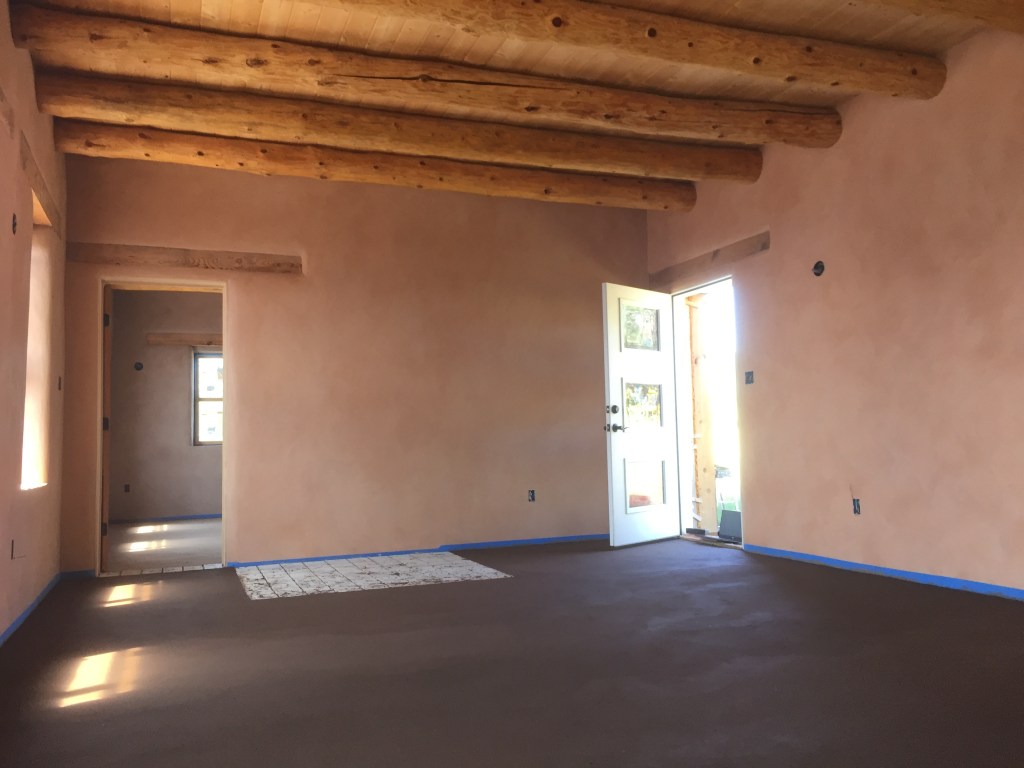 Not much compares to the beauty and feel of an earthen floor, but installing earthen floors throughout an entire house requires significant labor, awkward positioning, and long days. But it is doable, especially because you can usually break the house up room-by-room. The biggest marathon for us was the hallway/kitchen/living room, which didn’t allow for any convenient ways for us to cleanly break up the work. It took about two-and-a-half days to get all the floor material down and then another two days to finish buffing it out with a trowel. The extended time it took to complete made it more difficult to keep things looking uniform and a bit challenging to blend one day’s work into the next, but we ended up being quite pleased with the finished product.