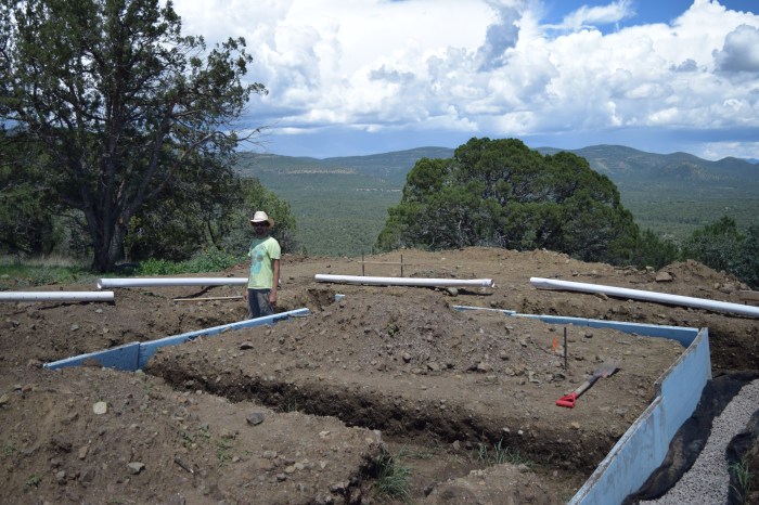 Earlier this week we started filling the trenches with gravel. A gravel trench foundation, also known as a rubble trench or french drain, is an alternative foundation that requires an engineer's seal to be approved in the state of New Mexico. The trenches are lined with filter fabric to reduce the amount of mud that … Continue reading Gravel Trench Footing Construction